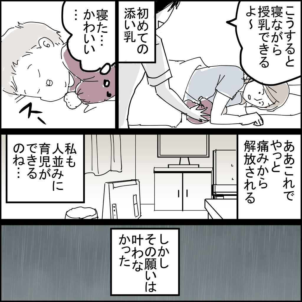 添い乳も初めて教えてもらい、寝ながら授乳できるなんて、なんて楽なんだ!と感動。