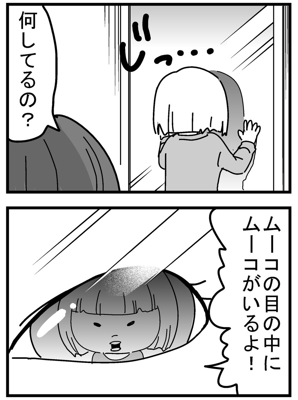 【育児漫画168】鏡の中の自分 2019年03月13日 (3歳10ヶ月)至近距離から鏡を見てたのでなにかと思ったら、瞳に写った自分を発見したようです。いいところに気づいたね~^^なんて思ってたんですが、調子に乗って鼻の穴の中や、口の中にも自分が居ると言い出してました…。居たら怖いわ!↓クリックで応援よろしくお願いします↓↓更新通知が届きますので、お気軽にご登録ください!↓ 「3歳」カテゴリの最新記事 < 前の記事次の記事 > コメント コメントフォーム 名前 コメント 記事の評価 リセット リセット 顔 星 情報を記憶 コメントを投稿する