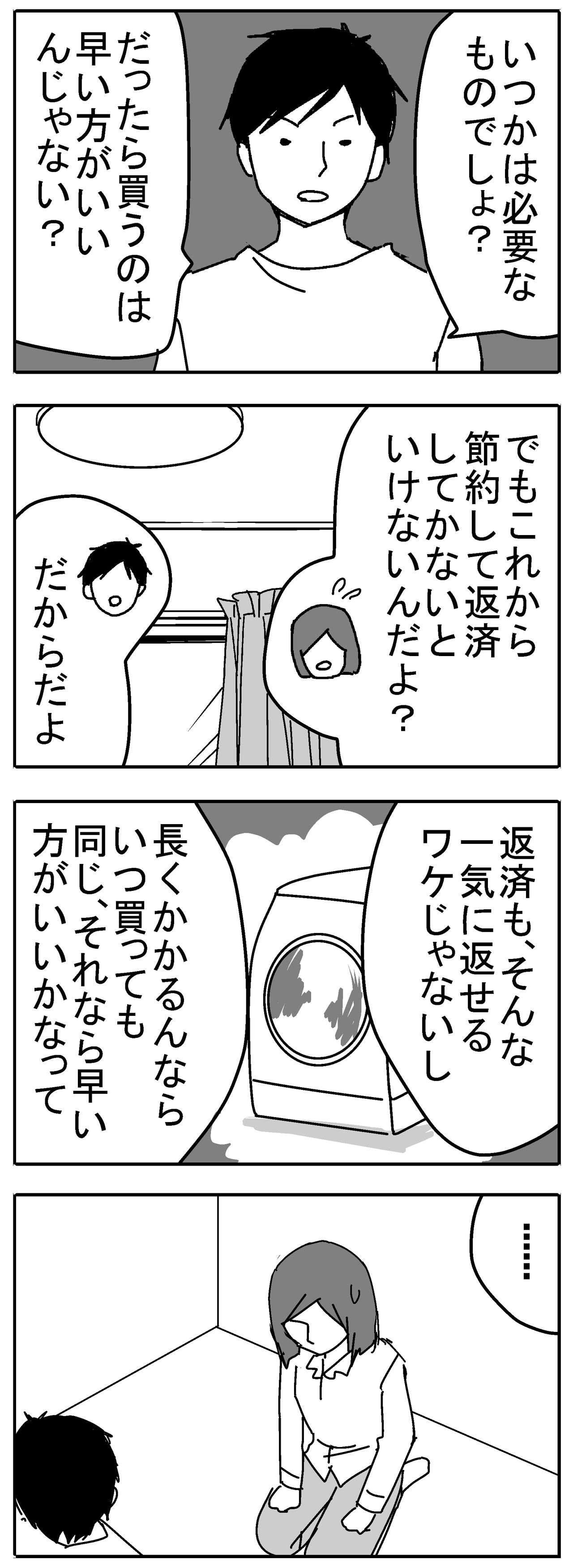 洗濯乾燥機なんて高価だから10万くらいするし、それならその金額を先に返済に回した方が絶対いいと思うんですよ…。