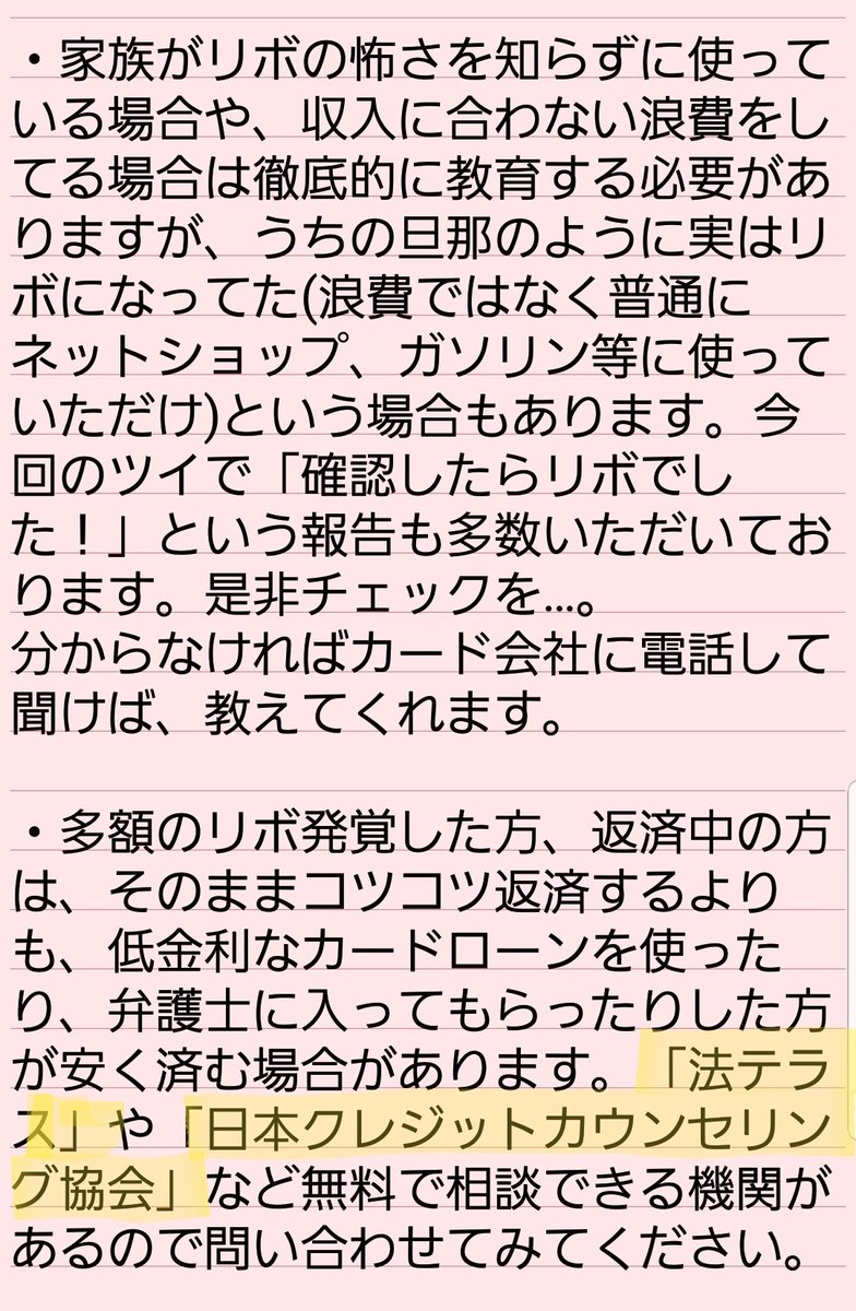 自分自身はリボの返済に困っていなかったので、気づくのが遅れました。