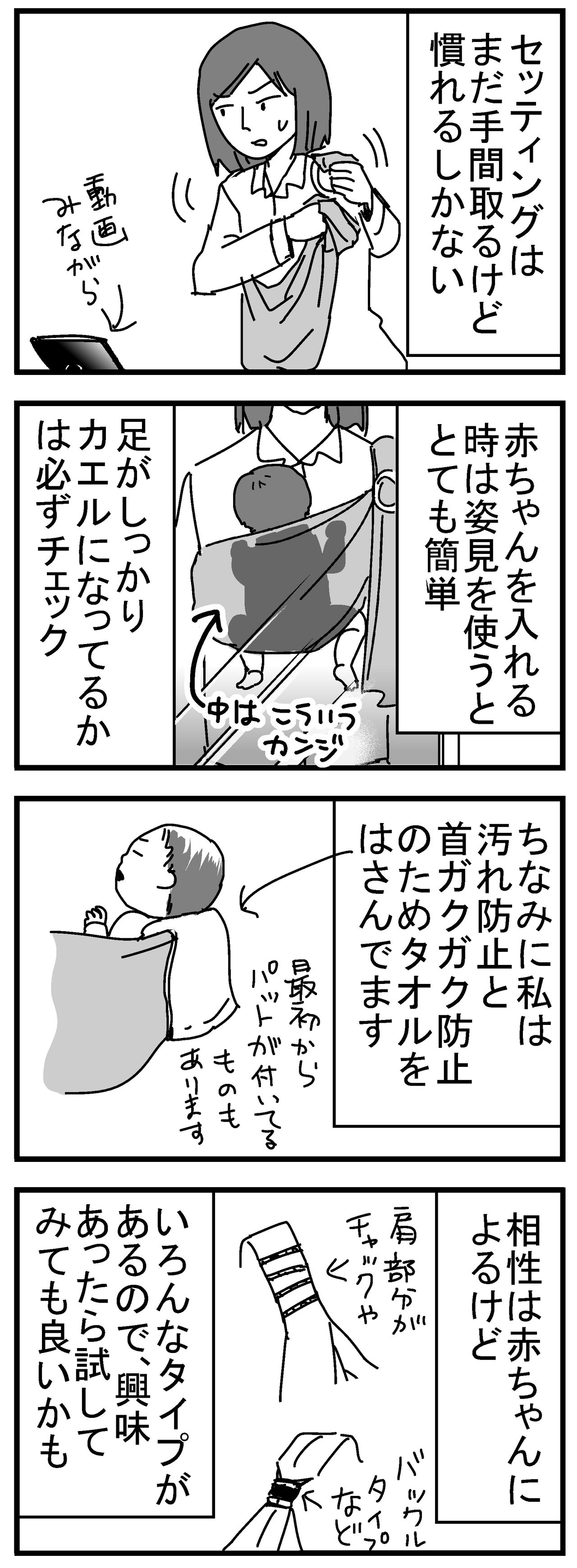 スリングのように片側だけ痛くなるとかはないし、スリングのデメリットで挙げられてたことはほぼないと思います!もし興味がありましたら、ネットで検索してみてくださいね^ ^