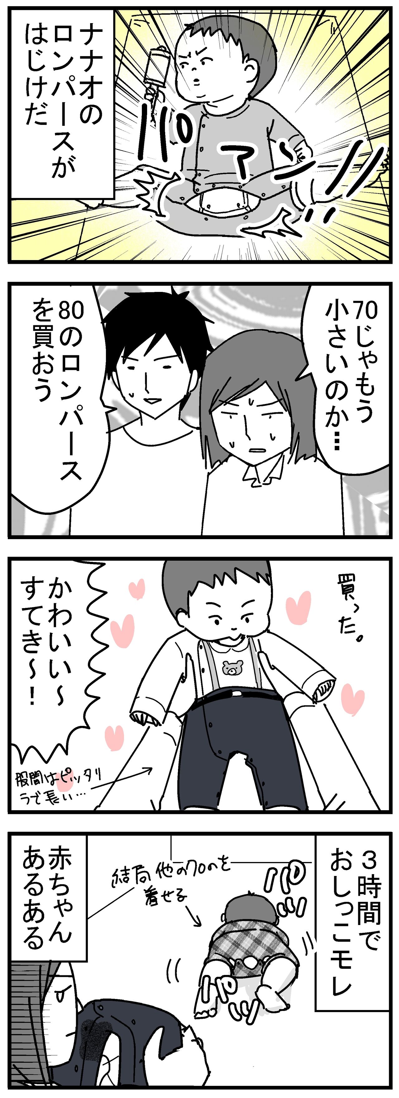 ロンパースの下にズボン、想像したらすごい面白いですね😂今だからできるダブル使い!