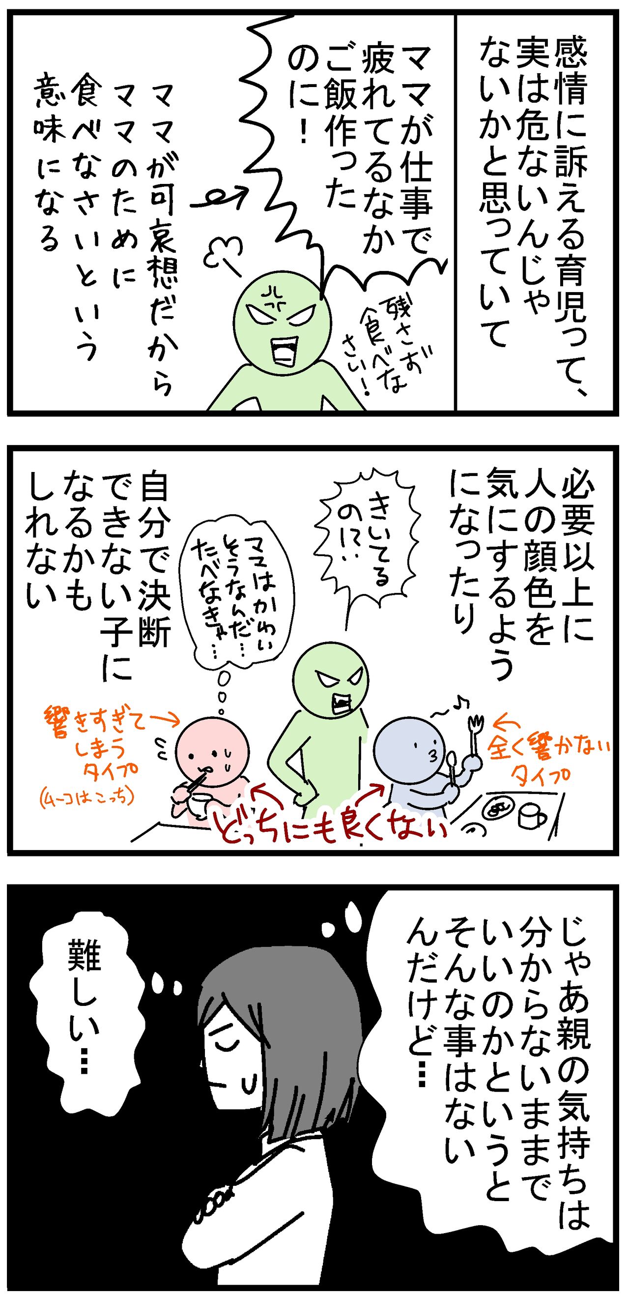 仕事で疲れてるという自分の状況、気分で怒ってるのも薄々感じていながらも止められず、怒っては反省の日々でした。