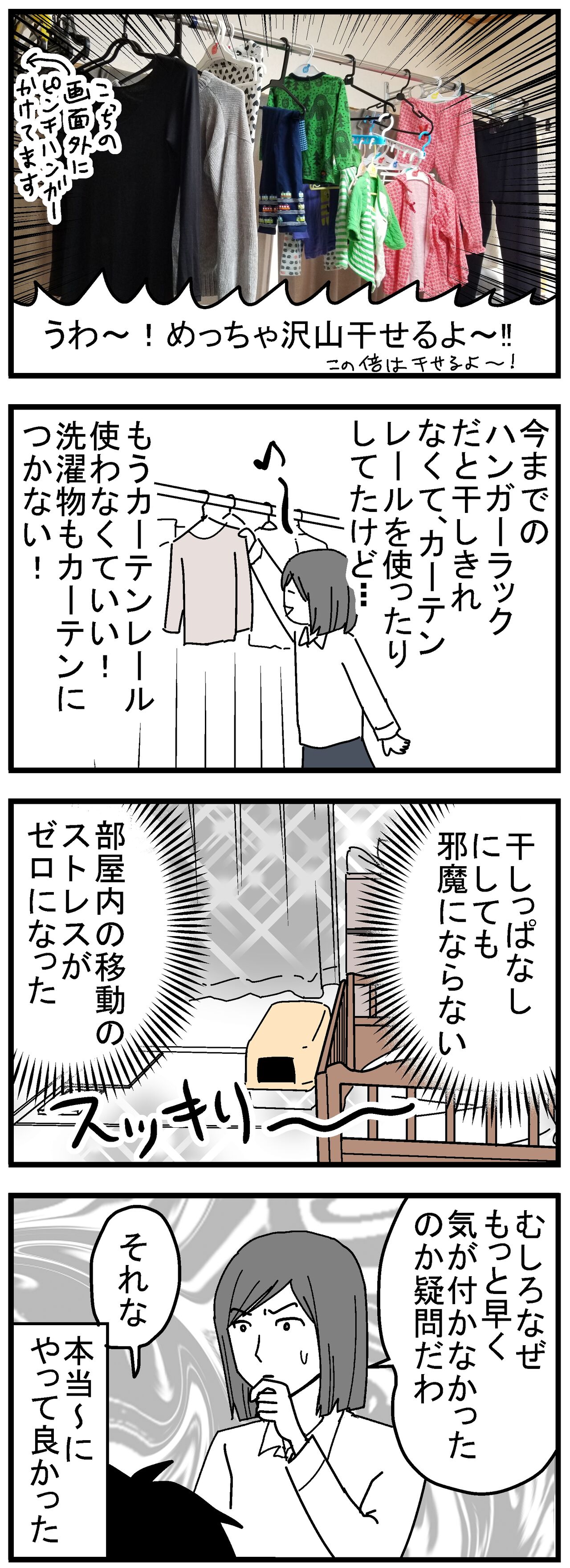 1コマ目、大判タオルとか旦那の仕事着とか取ったあとなのでスカスカになってますが、かなりの量を掛けることができます。