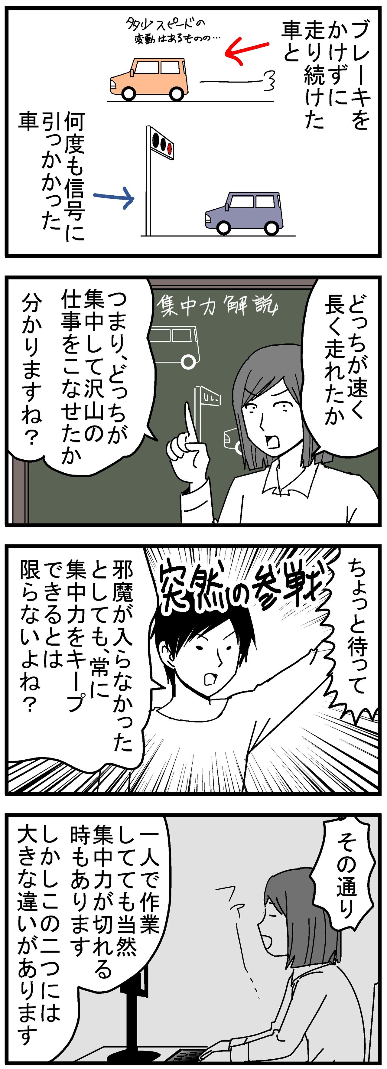 旦那に話しかけられることによって、自分自身の集中力がどのように変化するのか、考えてみました。