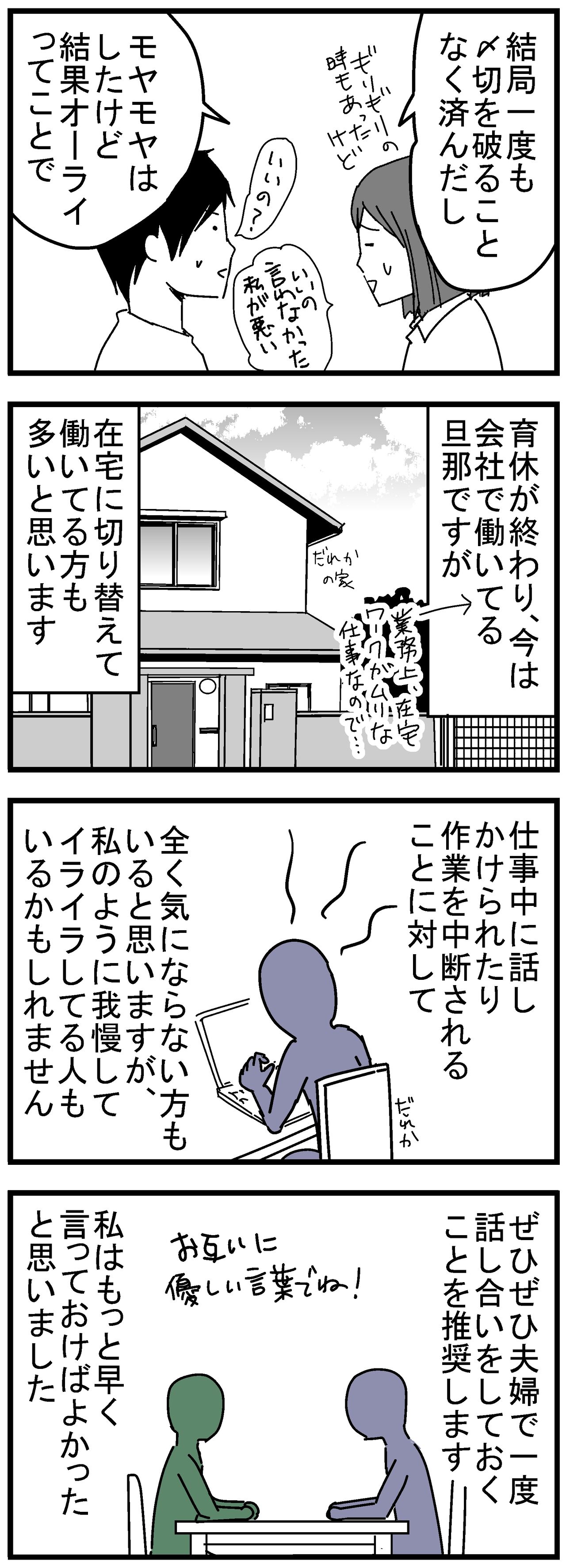 結局、旦那の育休が終わるまで言えなかったですからね…私…。