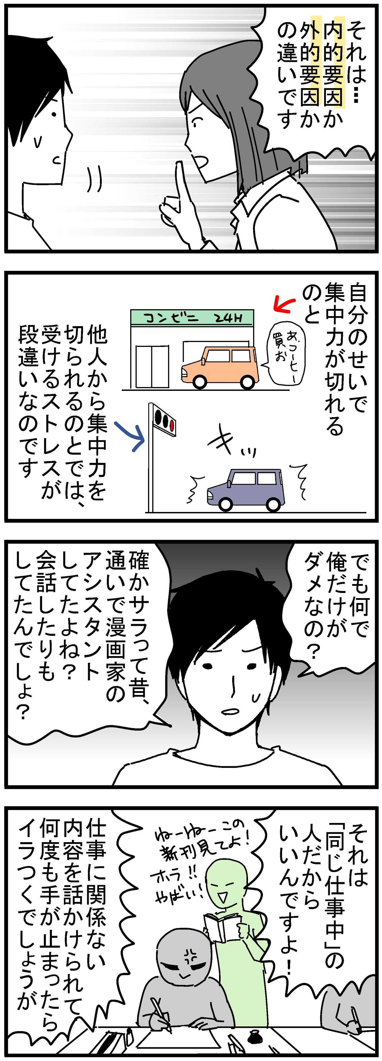 人に話しかけられて集中力が切れることと、自分で勝手に集中力が切れることの違いとは…