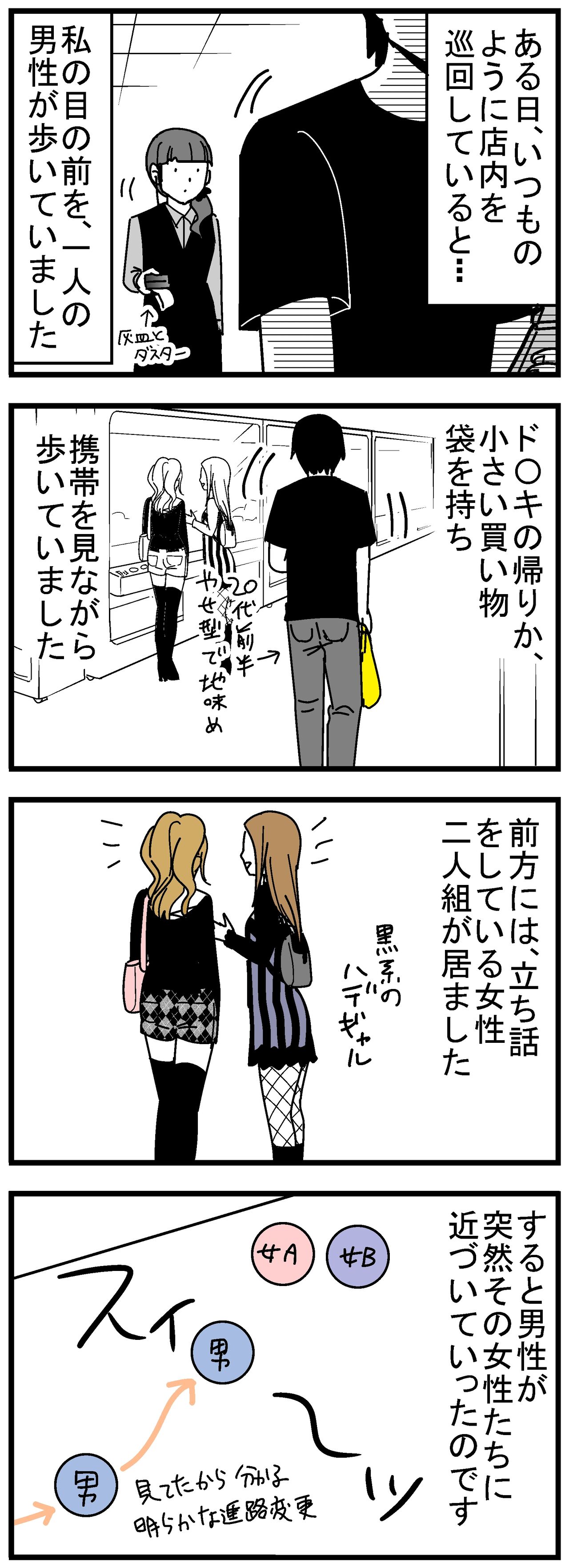 この日も、いつも通り巡回してたら、ふと目の前を歩いてる男性に目がいって。