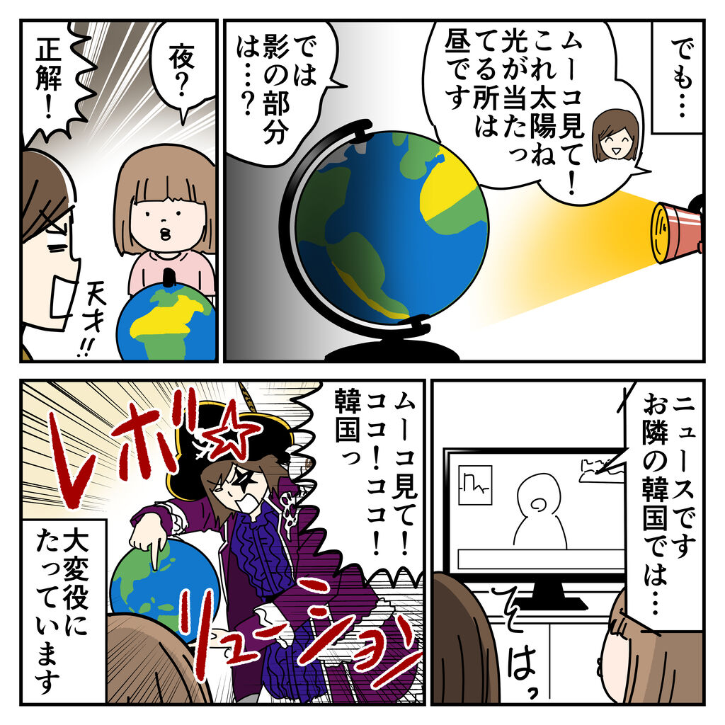 慌てて地球儀を持ってきて「ココ!ココ!」ってやってる姿は