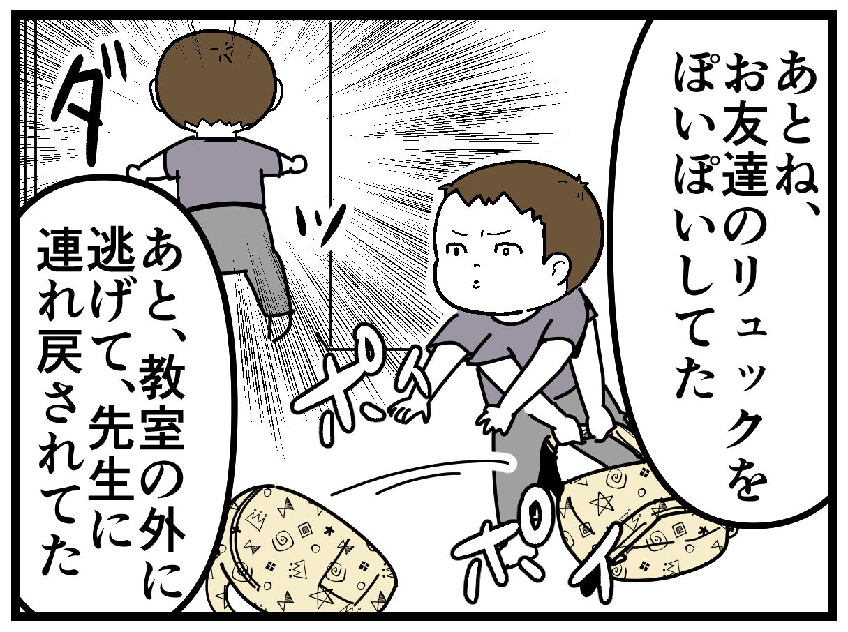 ピアノの下に隠れたり、お友達のリュックをポイポイしたり、教室の外に脱走したり、
