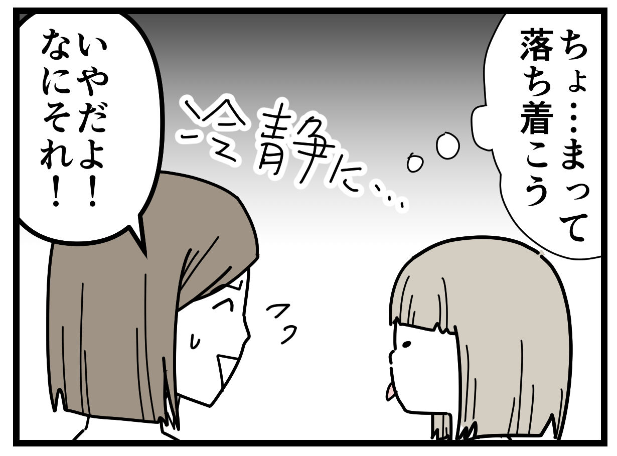 私は「この雰囲気を悪くしたら、ムーコが話してくれなくなる」と思い、とりあえず笑顔で「いやだよ~!」と拒否しました。