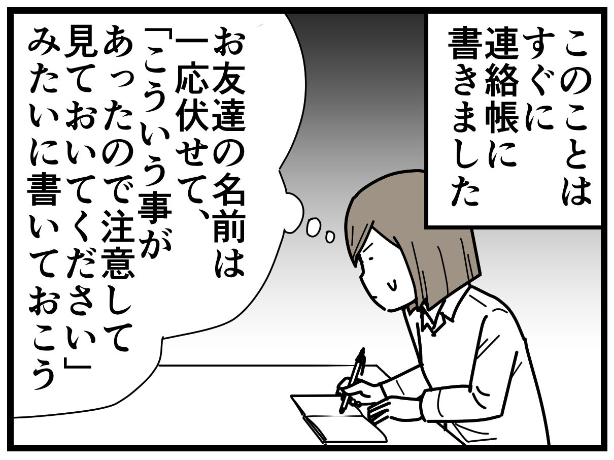 お友達の名前まで書くのはどうかな…と思ったので、その部分は伏せて、
