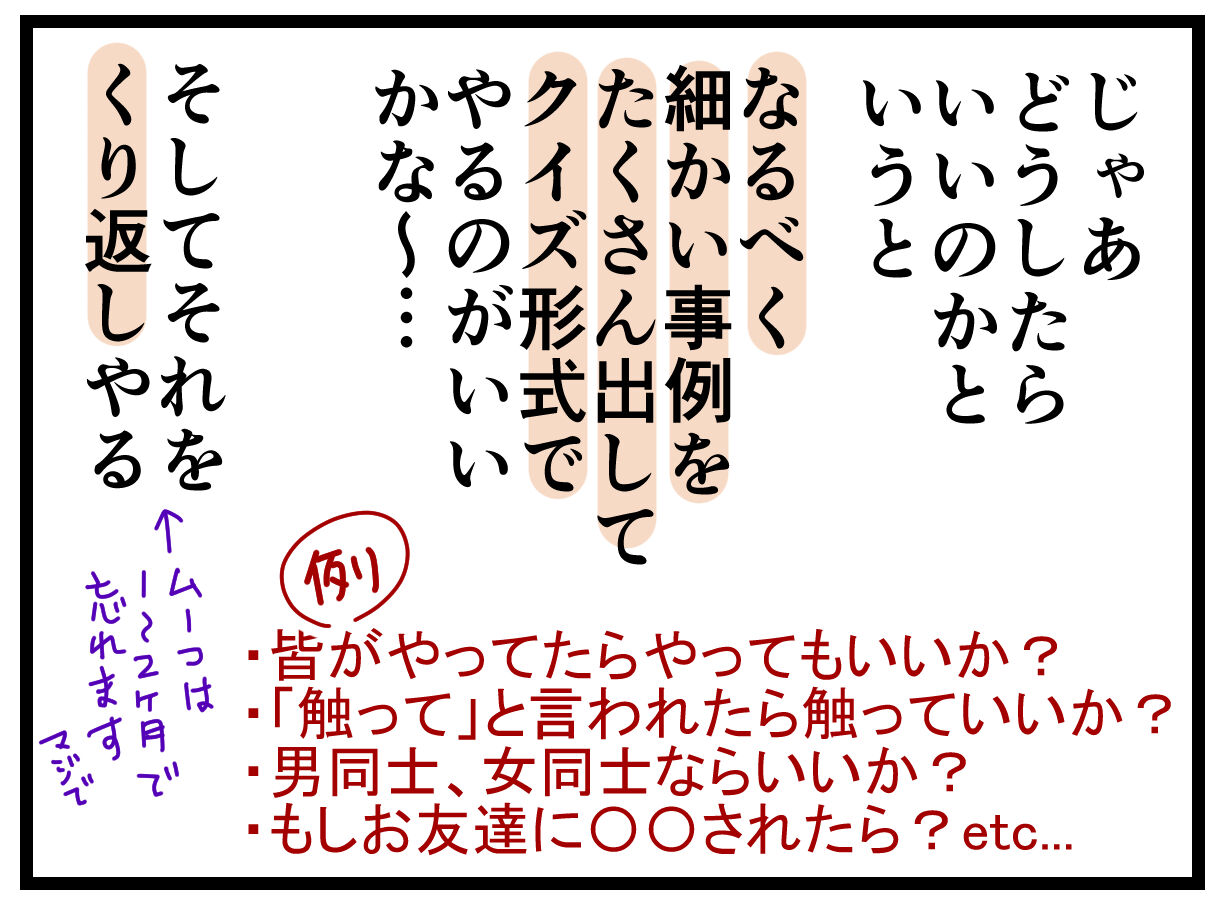 たまに、カンチョーはダメだよとか、スカートまくったらダメだよとかの話はしていたのですが、