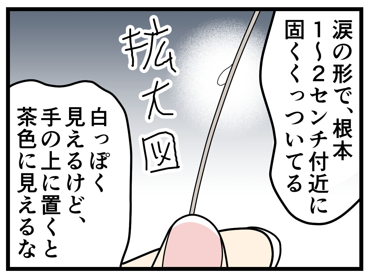 卵なんですけど、最初は爪で掴んで引っ張り出すのが難しかったので(慣れたらできるようになった)、ハサミで髪の毛ごと切ってみました。