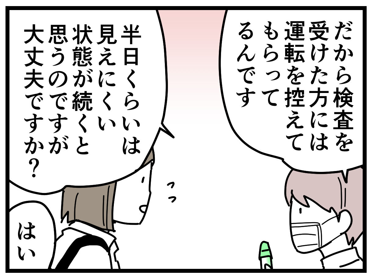 「見えにくくなりますから」と何度も念をおされ、わかったわかったwそんなに心配しなくてもwwと思っていました…。