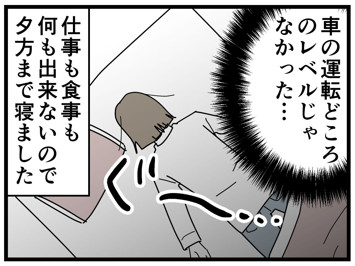 看護師さん、運転はやめて的な事を言ってたけど、こんな状態で運転しようとする人はいないと思う!