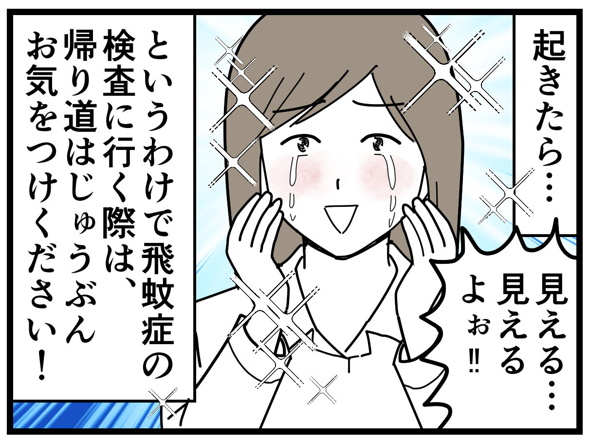 なんにせよ、飛蚊症を診てもらう時は付きそいの人と一緒に行く事を強くおすすめします!