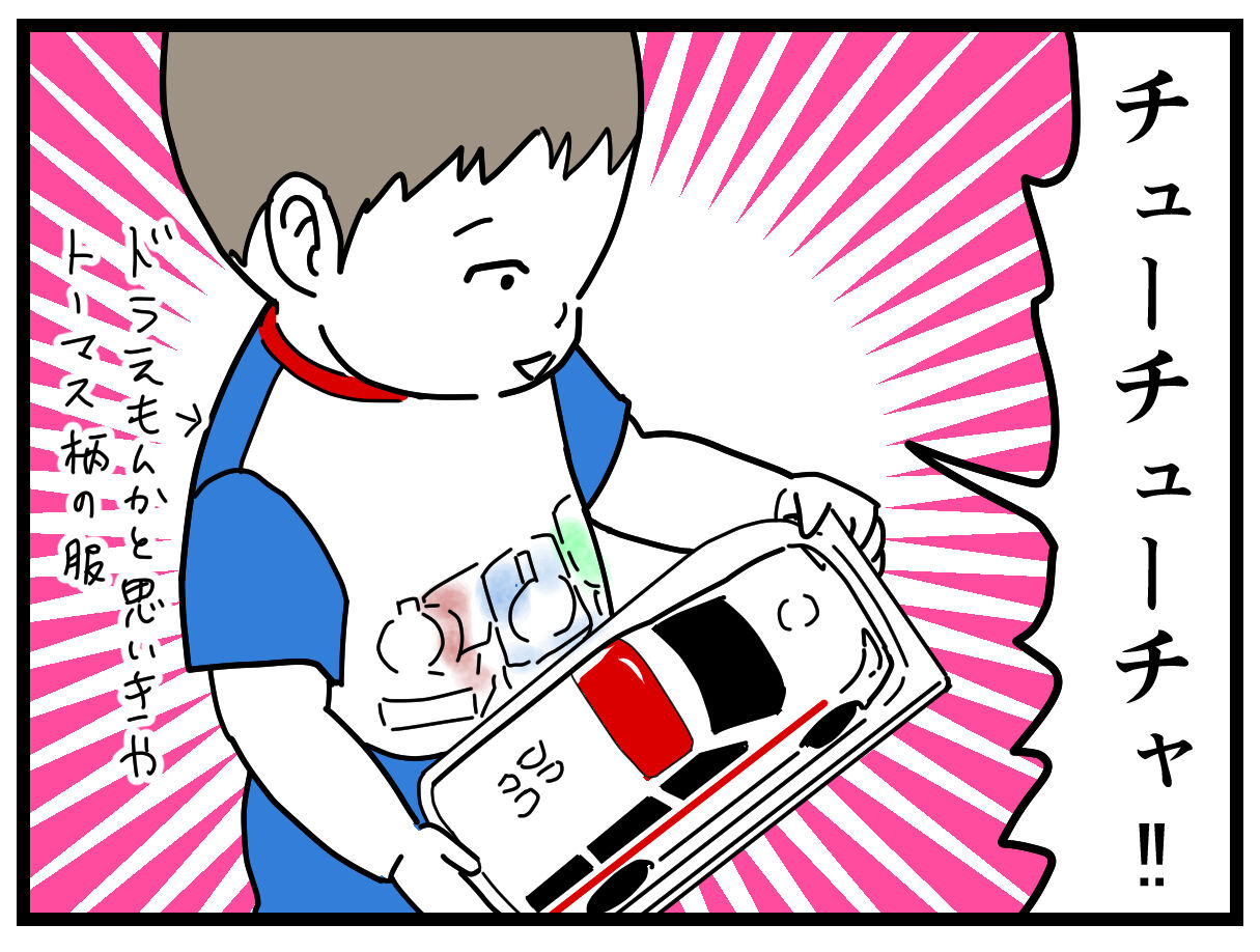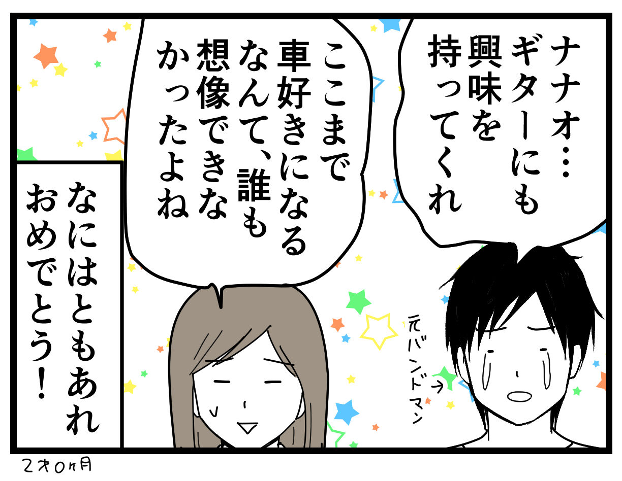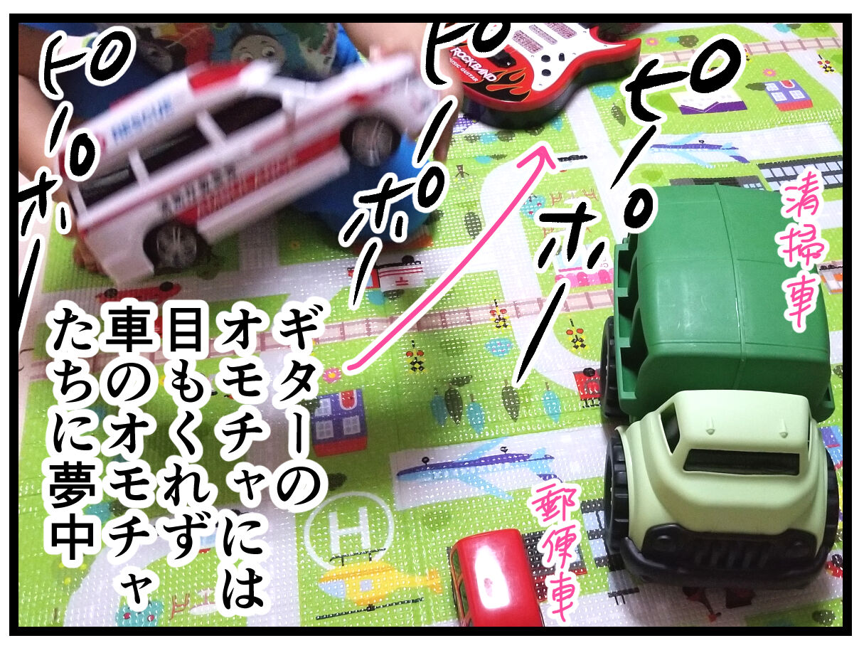 パパのギターやベースに興味深々だったあの日は既に過去となり、今やギターのオモチャには目もくれずに車、車、車…。