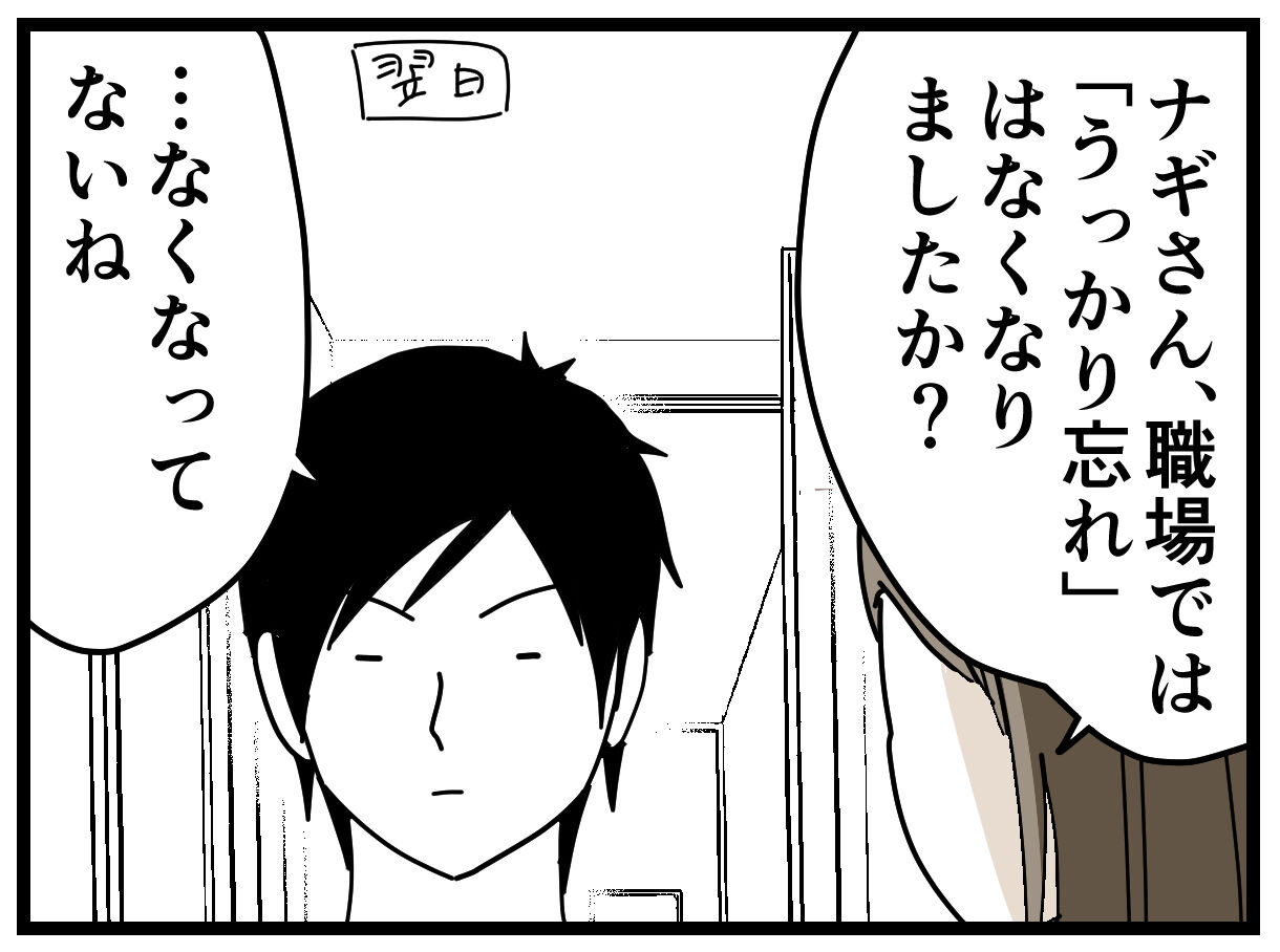 ナギさんに聞いたら、職場でもうっかり忘れは治っていないとのことだったので、次回の病院では