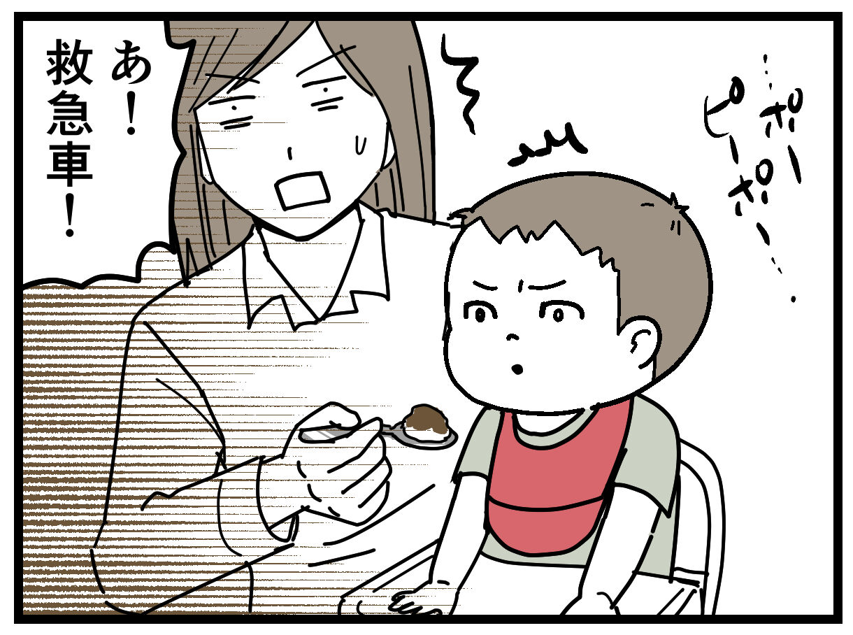 うちの子もななおくんくらいのときサイレン聞こえると見たがって怒るのでマンションなので通りが見える玄関前まで息子を大急ぎで担いでました💦