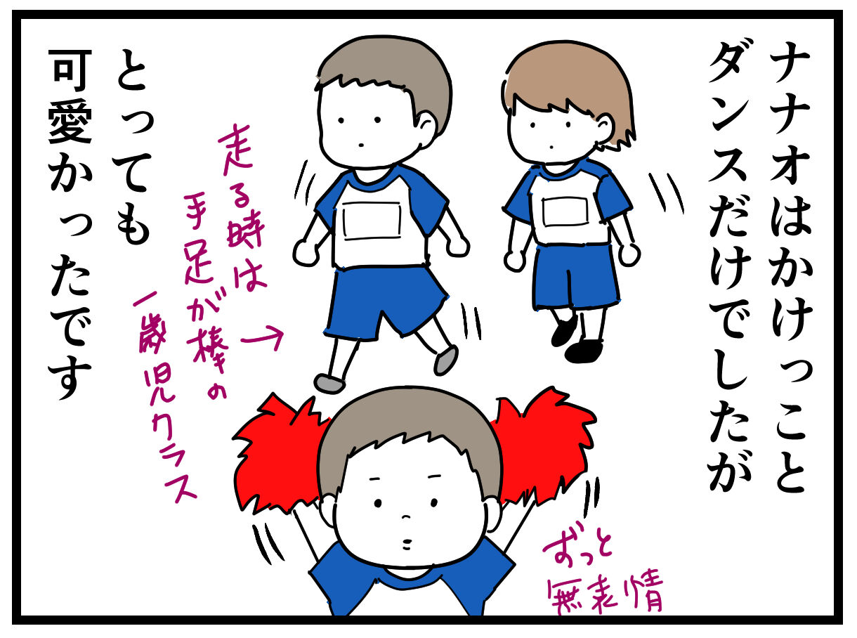 1歳児クラス…踊りを途中で飽きるのがデフォ。訳も分からず走る。かわいい。