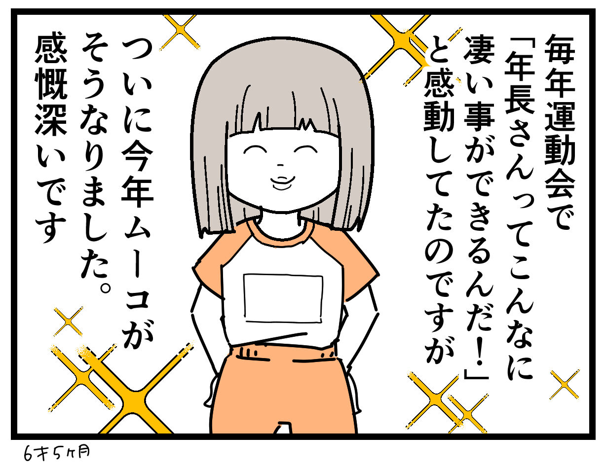 毎年運動会では「年長さんってすごいなあ」と思いながら見てたんですけど、まさかその年長さんにムーコがなるとは…。