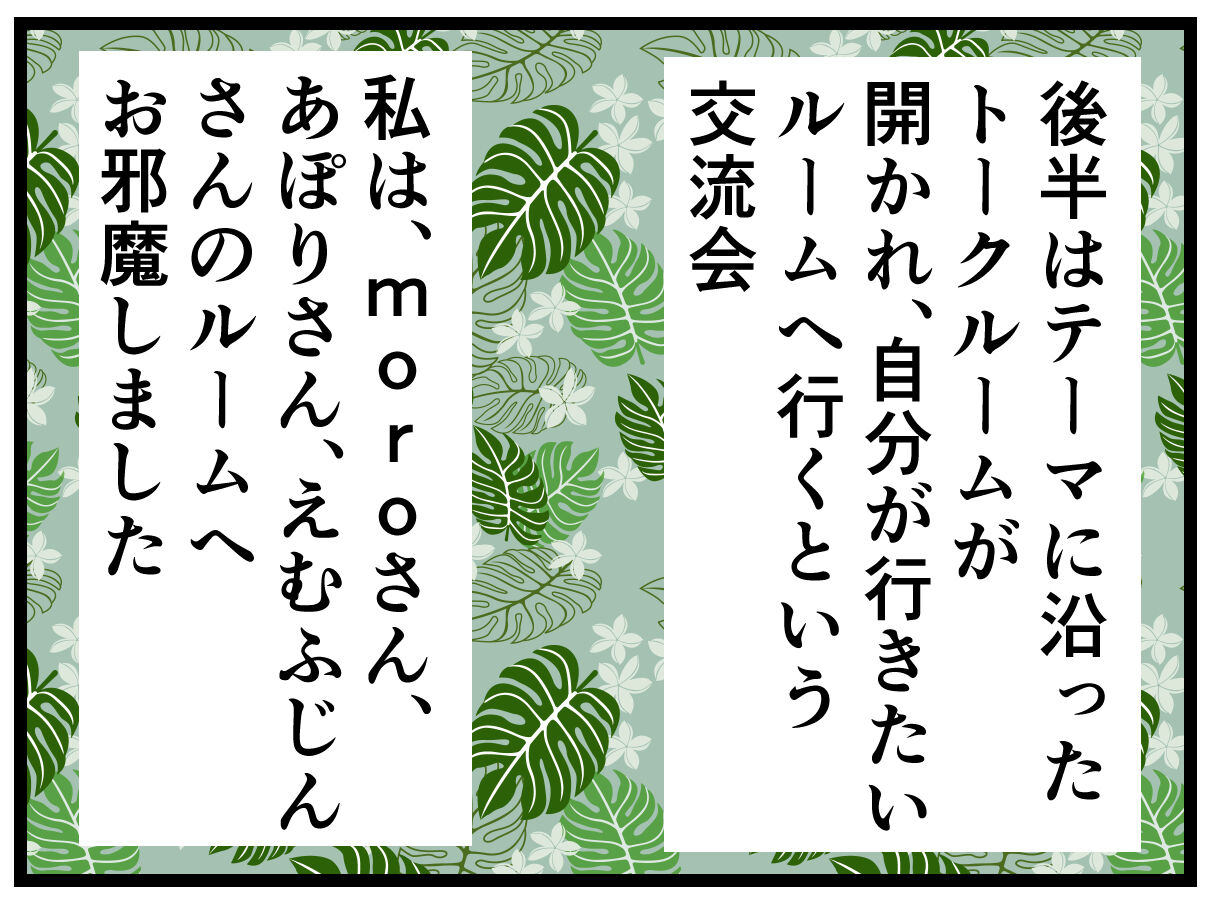 でも初めましての方のお話を聞くのは新鮮だったし、お話してみたいって思ってた方とは少しだけだけどお話できて、とっても楽しかったです!