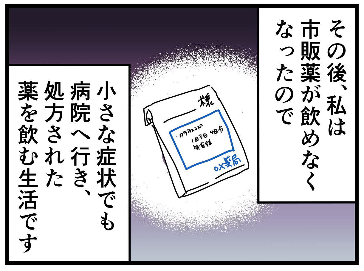 それ以来、その成分?が入ったものは避けるようにするためお薬手帳にも書いて、初診で受ける所には絶対に伝えてます。