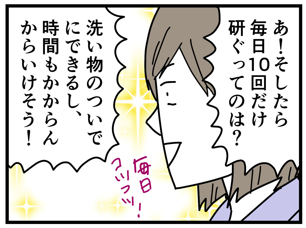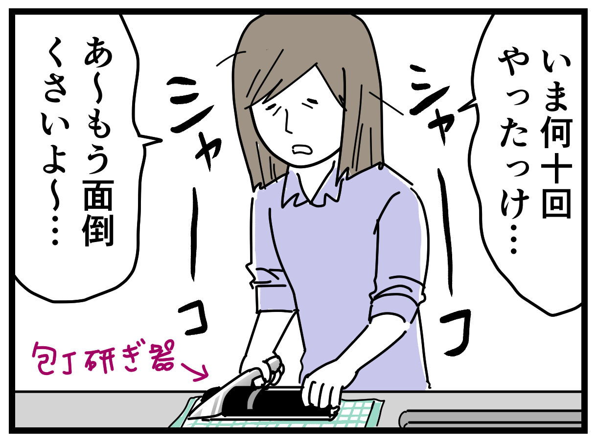 子供二人を見ながらだと、たった10回研ぐ時間もない程忙しい時もあるんですよ…。