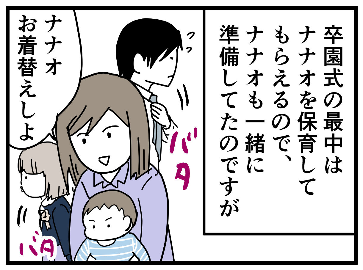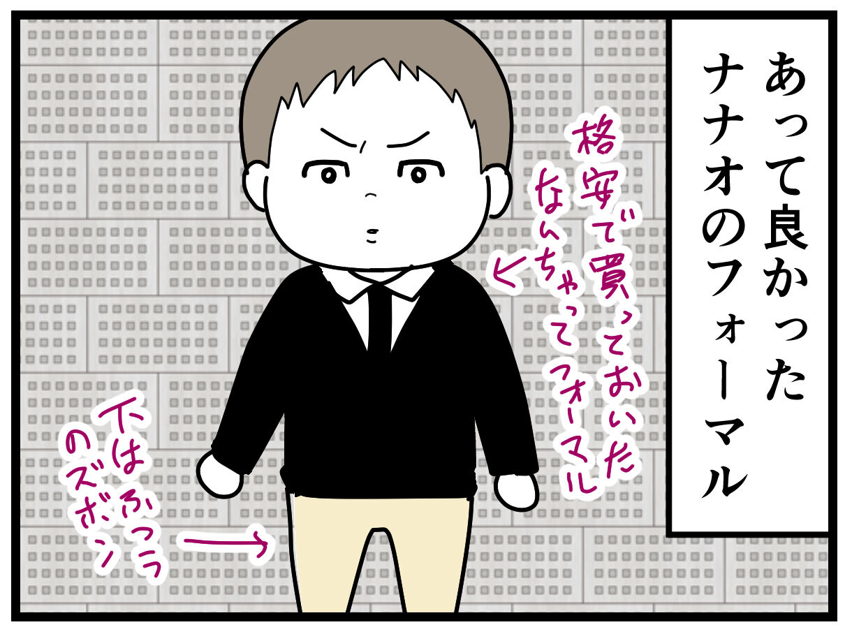 ナナオがいきなりフォーマル着たがったり、私がナナオのリュックを忘れたり、ナギさんがマスクを忘れたりと色々ドタバタしたけど、無事に式に参加できました。