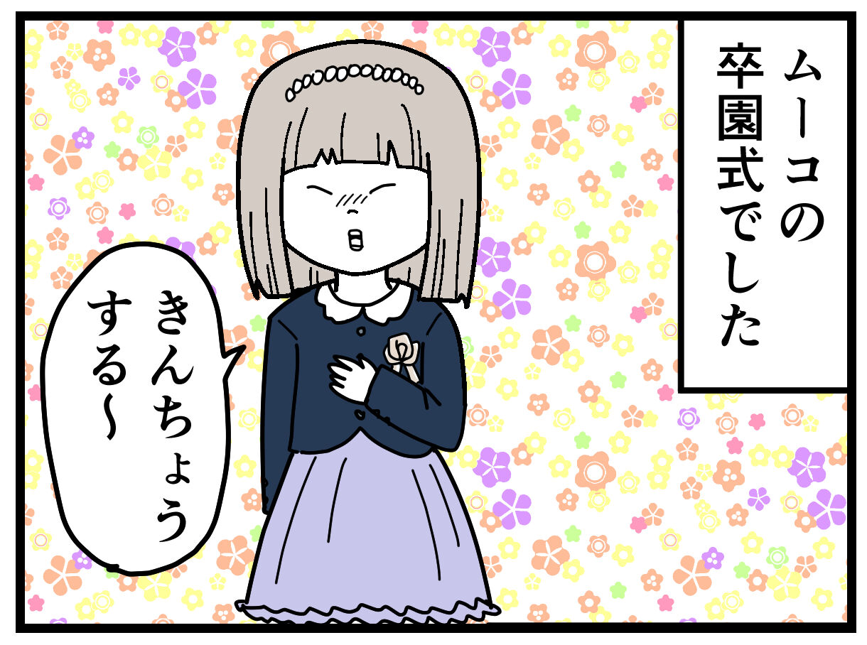 とうとう卒園なんですねぇ…本当、あっという間ですね。このブログをずっと見守って?きてむーこちゃんが悲しそうなら悲しいし嬉しそうなら嬉しいし楽しそうなら楽しい!とまるで疑似親のような気持ちでむーこちゃんの回を見ていたので卒園式を想像しただけでウルッときちゃいました。