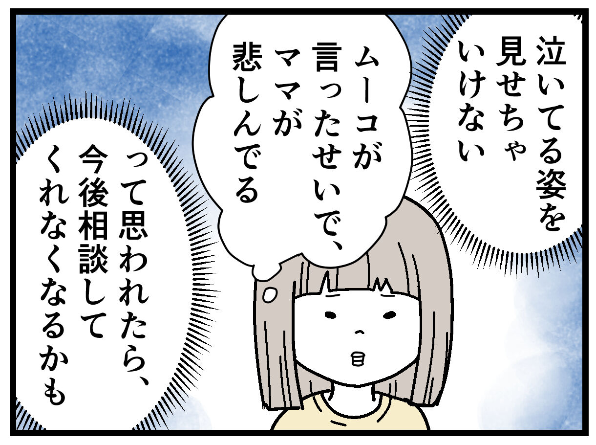 ムーコが「ママを泣かせてしまった」とショックを受けて今後こういう話をしてくれなくなるのが怖かったので、私の涙は隠しました。