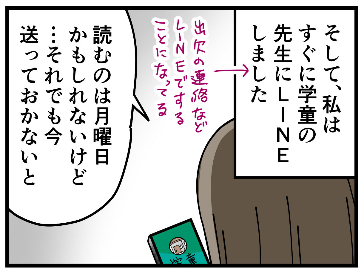 学童の先生方が管理しているLINEがあって、普段は出欠の連絡をしたり、何かお知らせがあると連絡が来るのですが、このLINEを使って文章を送る事にしました。