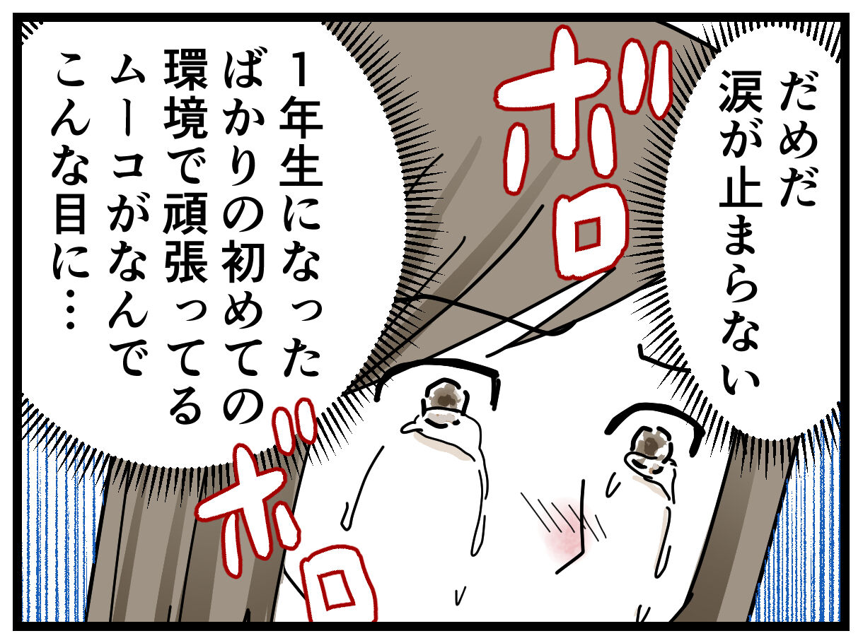 ムーコちゃんが意地悪をされたことを読むと胸が苦しくて、本人がつらくてやっと口にできたことを思うと涙が出ました。