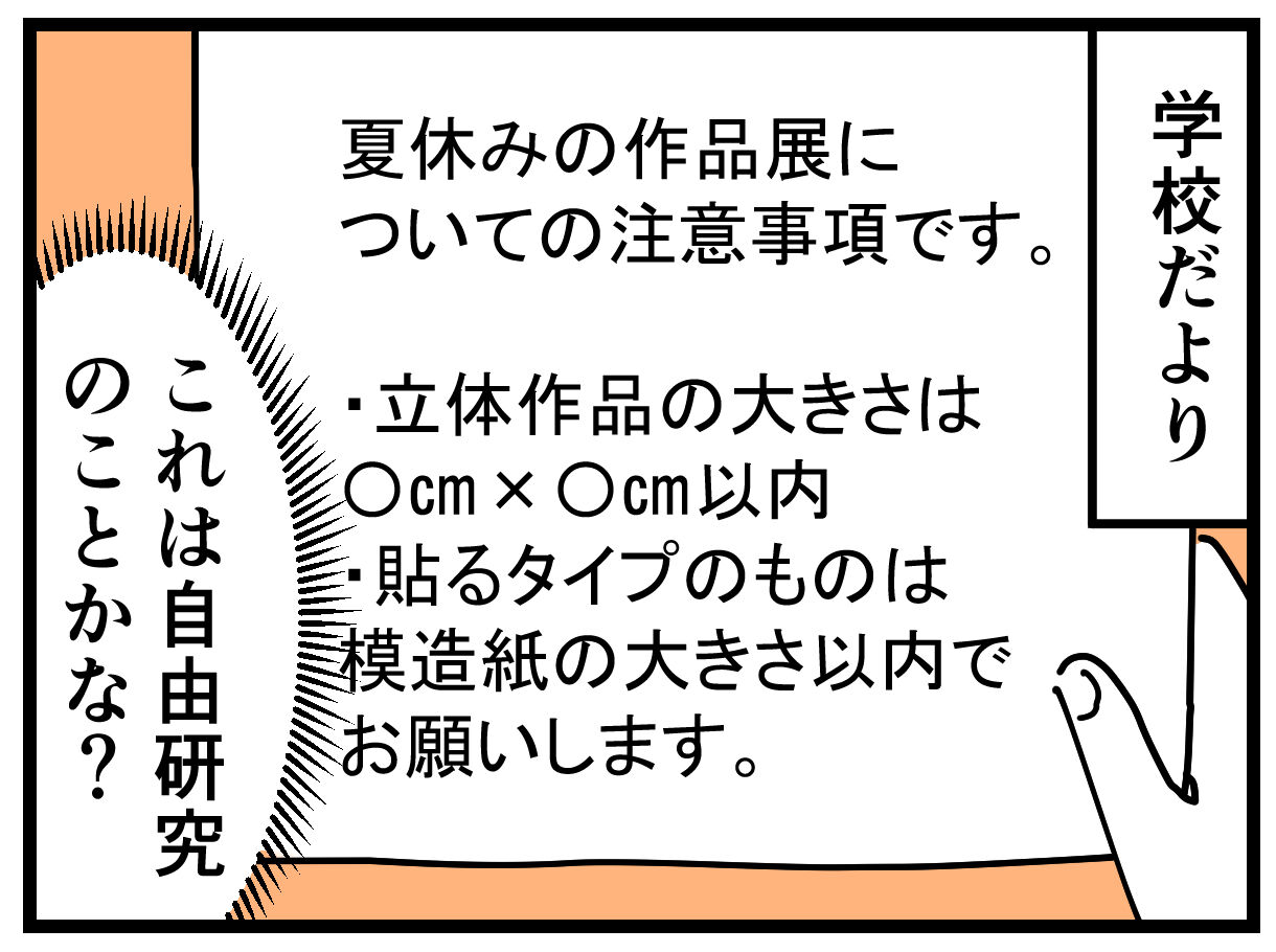 私は長男の時に、本当は自由研究と工作2つやらなきゃダメなのに工作やらせてなくて(みんなやってた)泣きました