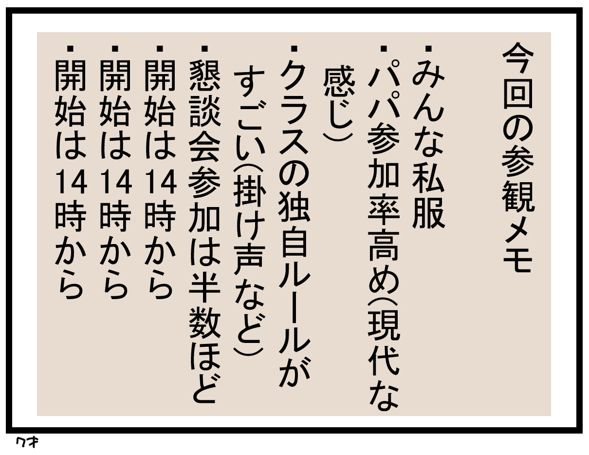 ひとまず、勝手は分かったので次の参観日は完璧ですよ。