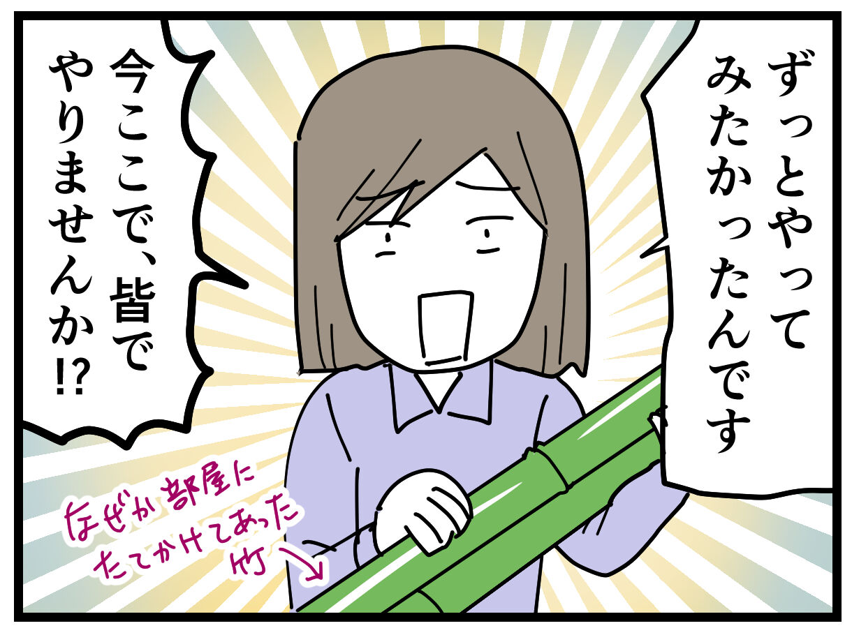 竹のカンカン!って音が心地よくて、見てるこっちもやりた~い!って思ってて。