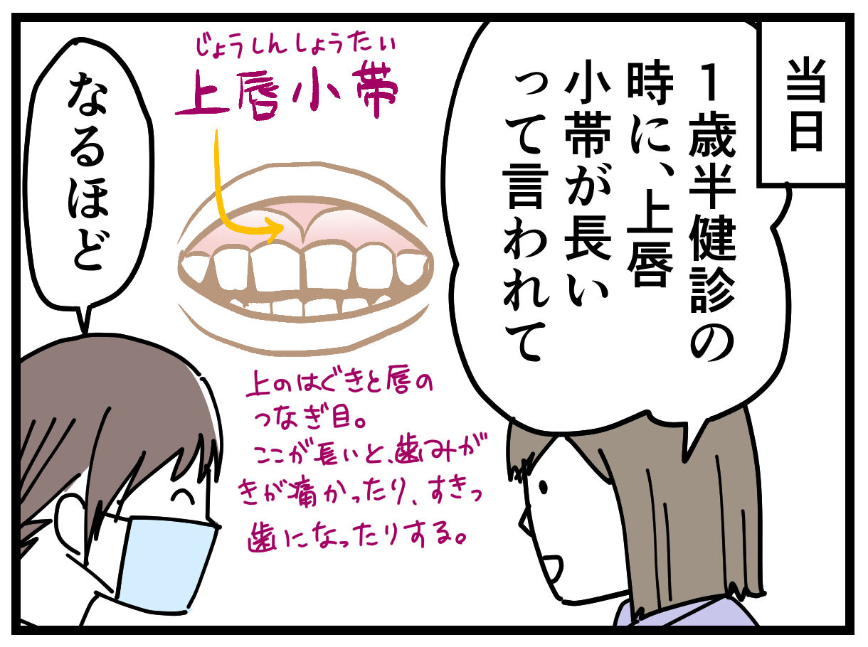 記事にはしてなかったんですけど、ナナオは上唇小帯が長めだと、1歳半健診で言われていました。