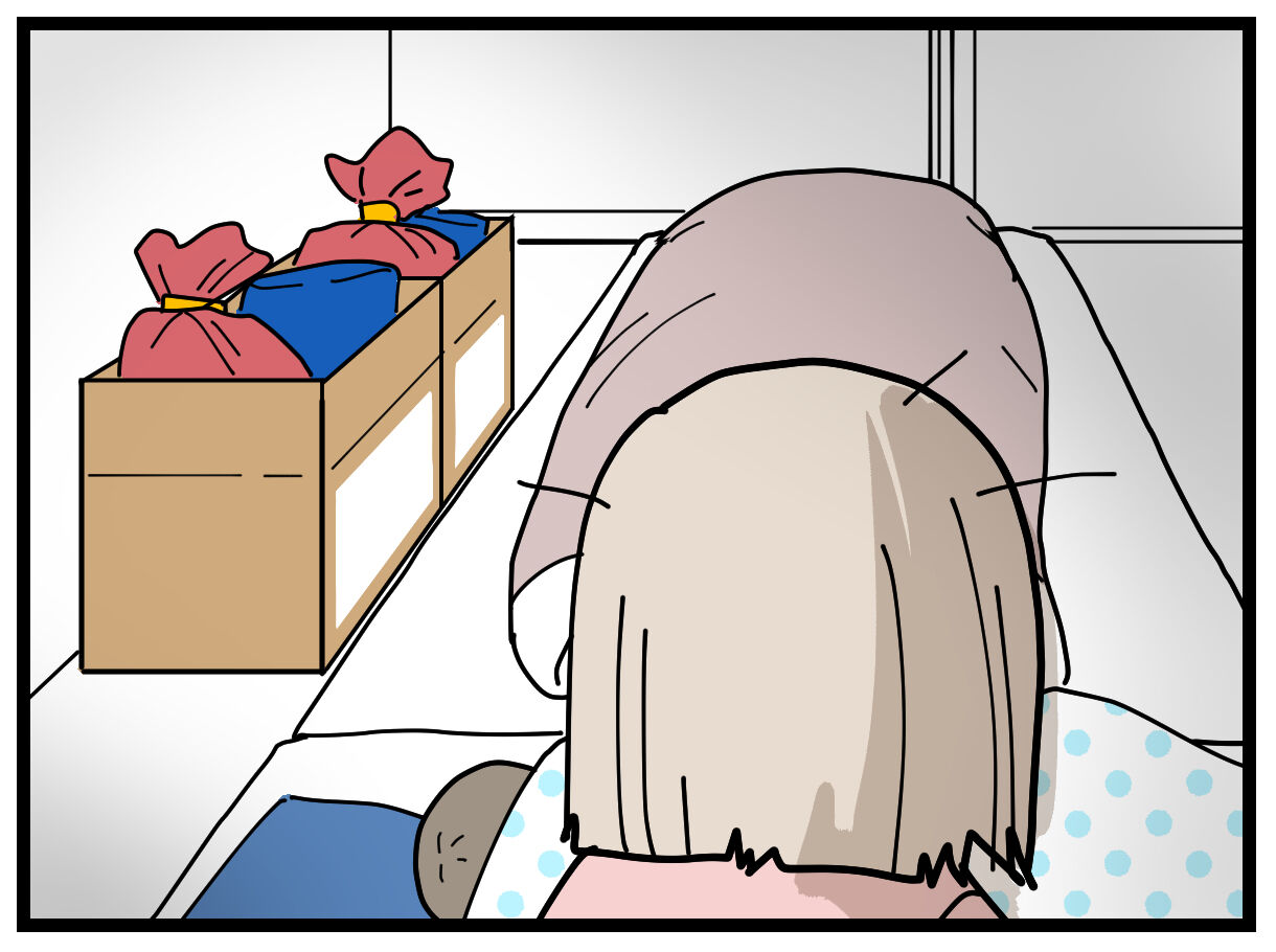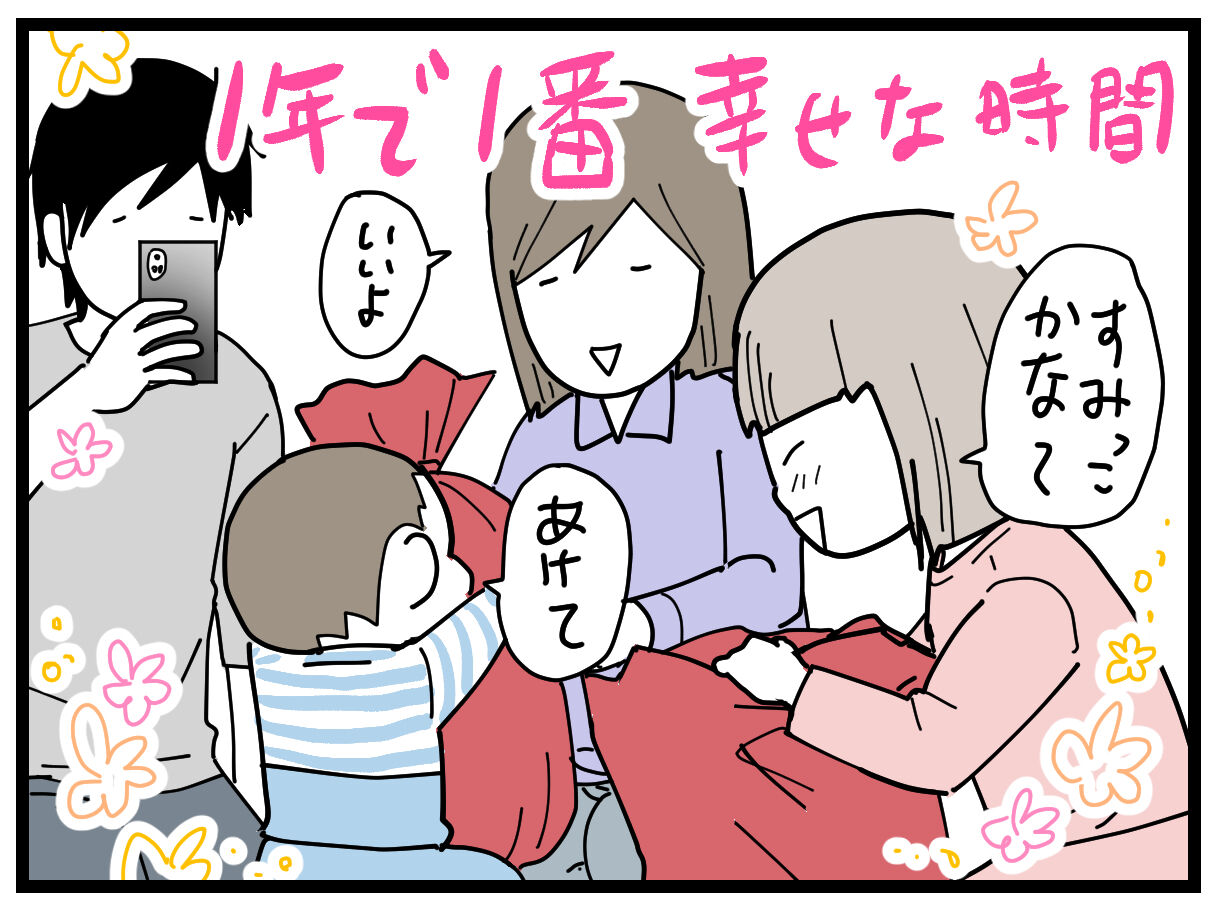 いつも全然起きないナナオが飛び起きたのは、「プレゼントを貰える」ということが分かってたのかな~と思います。