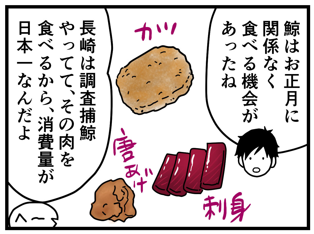 鯨の肉は、ナギさんいわくお正月に限らず普通に食べるよと。