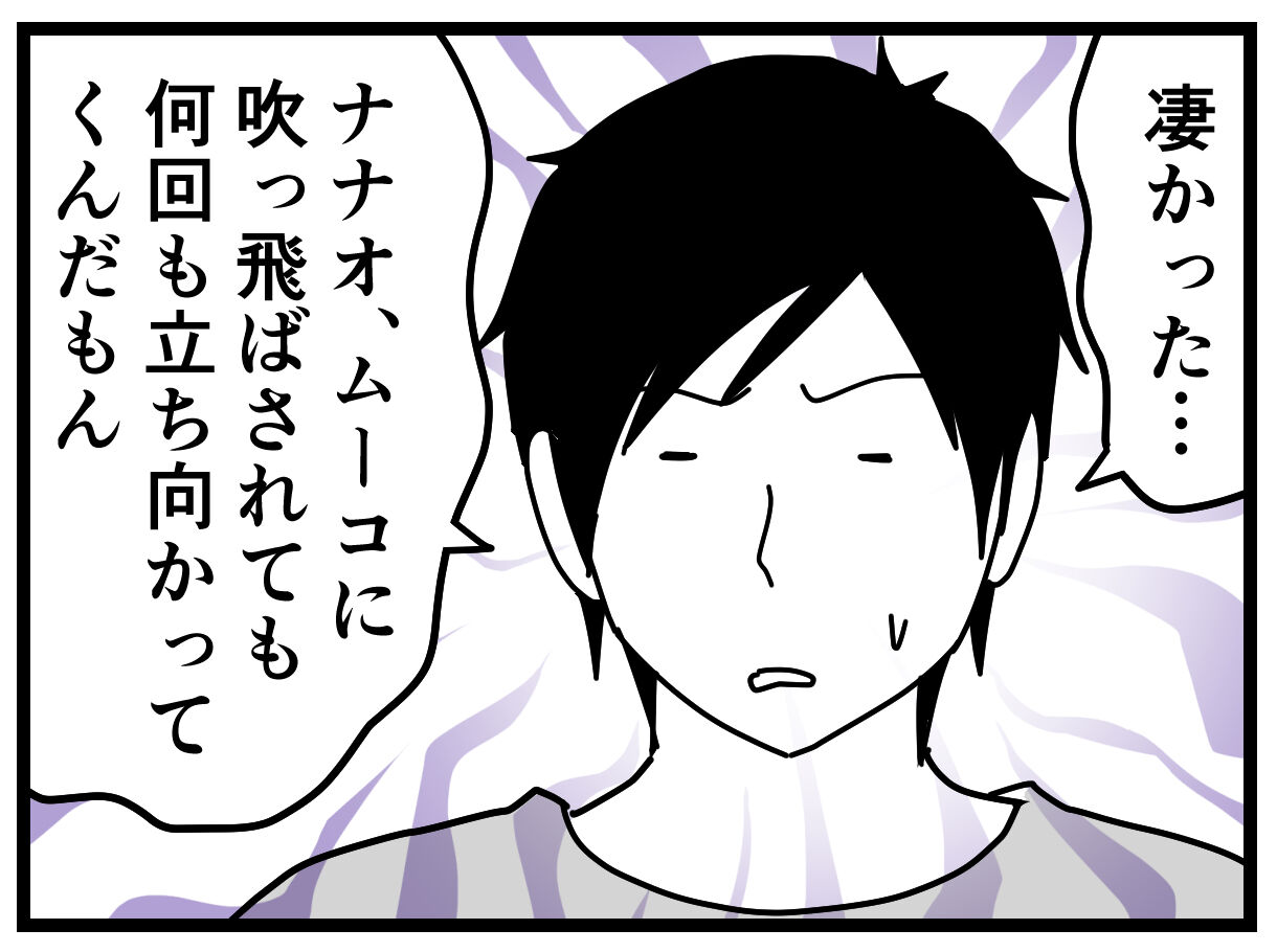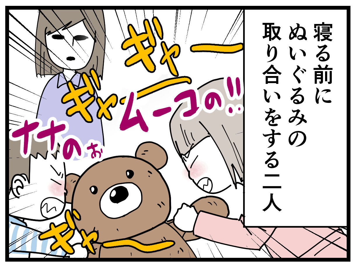 しかし実際は、ムーコに振り払われたナナオが何度も何度も立ち向かっていき、全力でぬいぐるみを取り返そうとするので、最終的にムーコの精神の方が折れてしまい、ナナオが勝利したとの事でした。