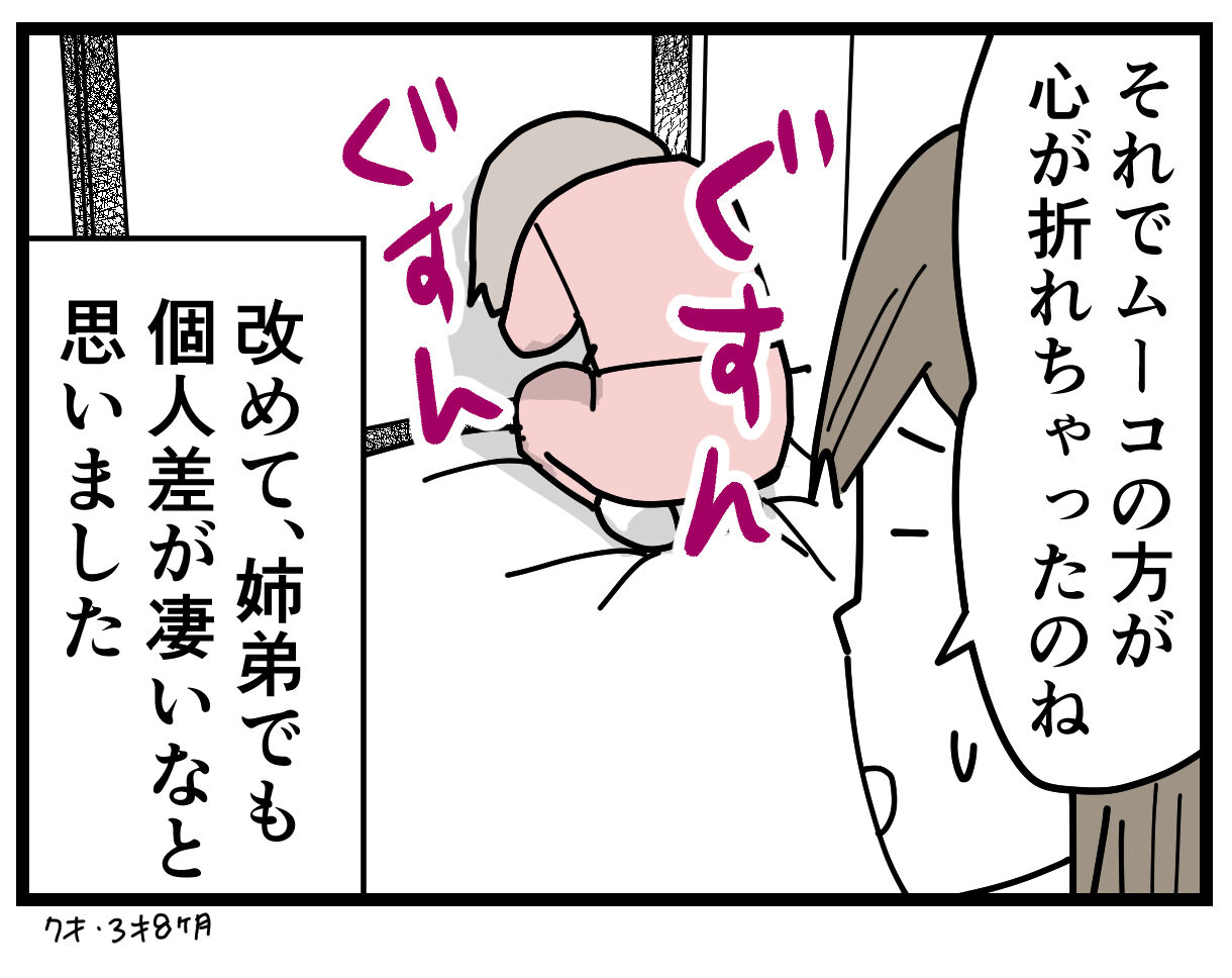 ちくまさん夫婦から愛情をしっかり注いで貰っている上に成長するにつれて姉であるムー子さんの優しさを学んでいくと思いますのでナナオ君は成長したら好青年になると思います。