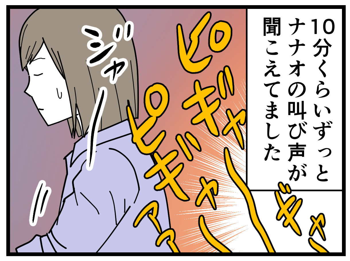 食器を洗ってる間ずっと泣き叫ぶナナオの声…。