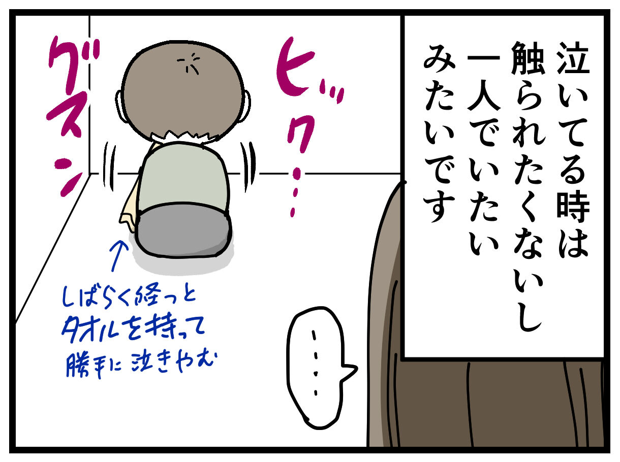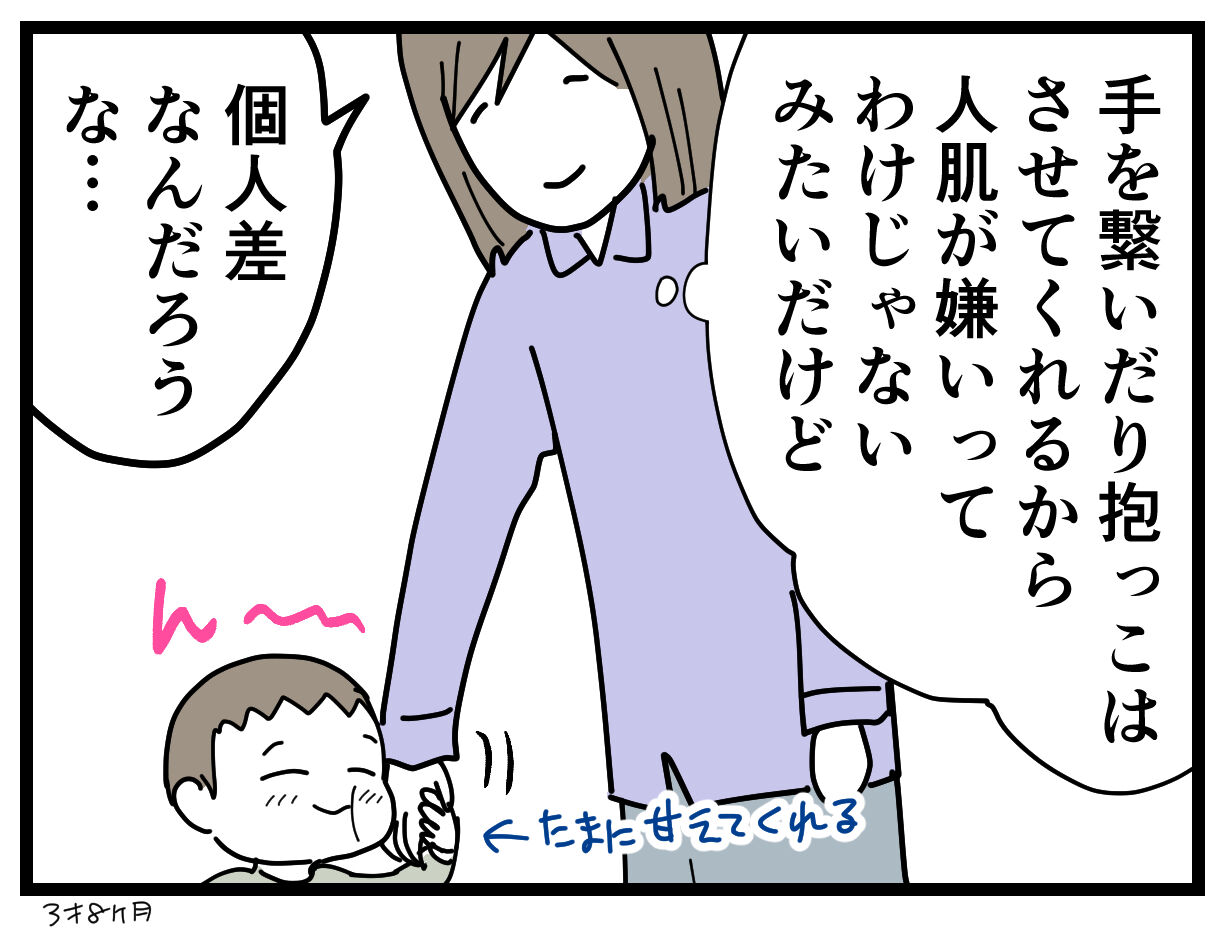 一人にはなりたがるけど、抱っこが嫌いってわけでもないし、普通に毎日抱き着いてきたり、手を繋いだりもします。