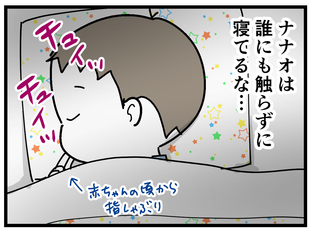 おっぱいやミルクやおしゃぶりに執着してたわけでもないし、ナギさんが育休とってたから特別寂しい思いをさせたっていう感じもないし、何がキッカケで指しゃぶりが好きになったかは不明。