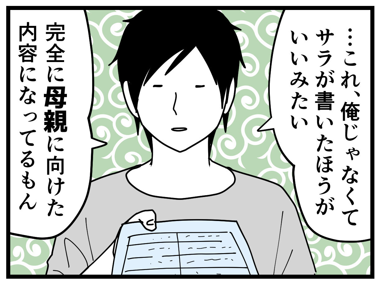 内容があまりにも「母親が書いて母親が来ることを前提としている」と。