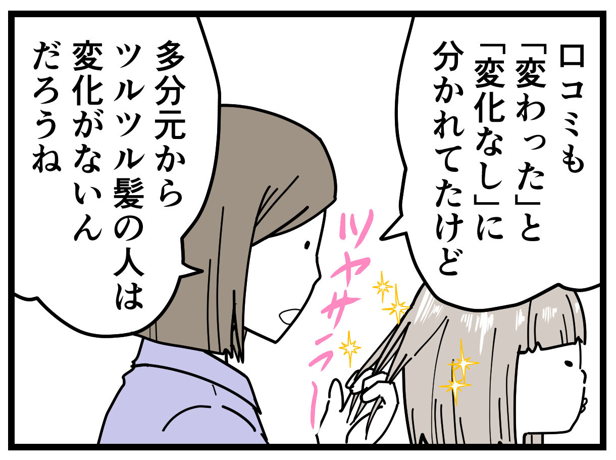 でも、元々の髪がつやつやサラサラだから、これ以上は良くなりませんって感じなんだと思う。
