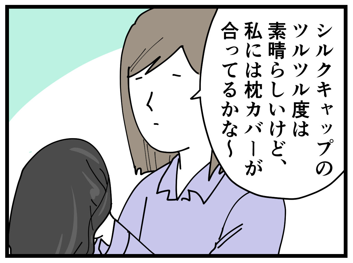 あ、あとナギさんにシルクの枕カバー使ってもらったけど、ナギさんもほとんど変わらないって言ってた。