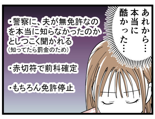 夫の無免許、無保険、無賠責。 そして、50万円の罰金…。