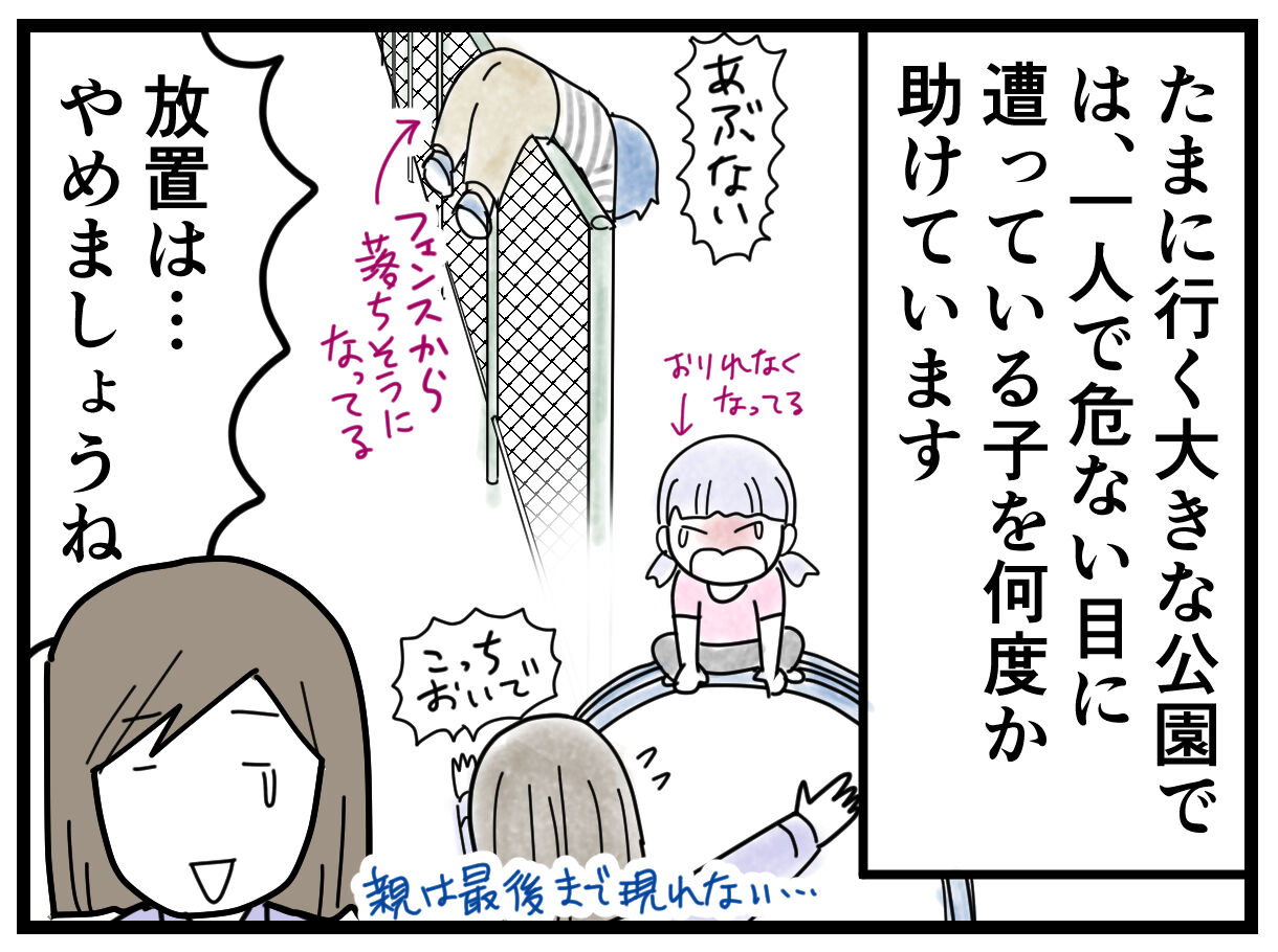 ネグレクト気味で放浪してるタイプは何かあった時に責任の所在が不明確になりそうだし、親は絶対近くにいるのに見てないタイプはこちらにストレスだけがじわじわと与えられて最終的にイライラして終わるので、とにかく関わりたくないです